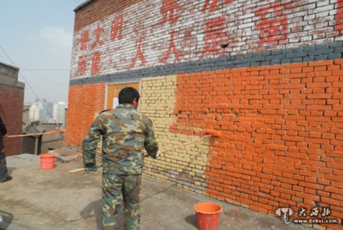 参与粉饰工作的各位工作人员,充分发扬一不怕苦、二不怕累的精神,每日一大早,他们携带水桶、刷子、滚子等工具,开始辛勤的工作。只见粉刷场面热火朝天,有的人提桶配料;有的人标线划线;还有的人一丝不苟,认真粉刷立面。