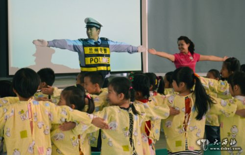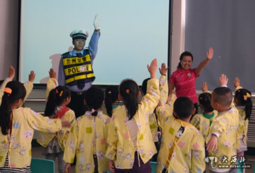 鑫报讯 5月10日,东岗交警大队宣传民警到兰大幼儿园向小学生普及交通安全知识。期间,民警首先以动画PPT的方式与小学生们互动,教他们识别交通标志,提醒他们过马路走人行横道、看红绿灯。另外,为了使小学生们们对交通安全知识产生兴趣浓厚,宣传民警现场带领他们与幼儿园老师一起做起了交通指挥手势。学习手势时,“小交警”们做的认认真真、有模有样。可以说,在欢乐的气氛中小学生们轻松地学到了交通安全知识。