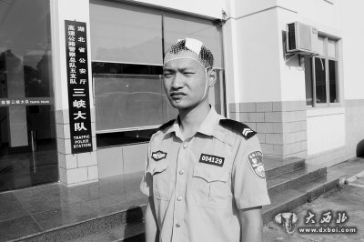 图为受伤的民警柳峰(图片来源:武汉晚报)