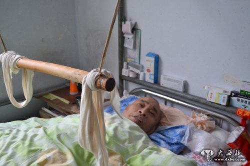 尹继常的病床上吊着一个“单杠”。这是姜致莲为防止丈夫胳膊肌肉萎缩,专门给他做的。为丈夫清洗过后,姜致莲把丈夫的手拿出来攥到棍子上,托着他的后背练了起来。