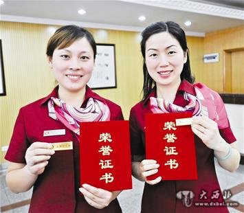 图为:获得金奖的熊玲(右)和蔡明芬