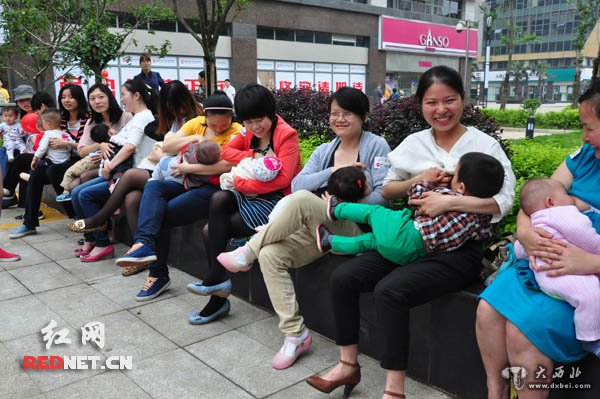 在长沙闹市街头,一群妈妈突然现身,在众目睽睽下集体解开胸襟——她们在给孩子喂奶。