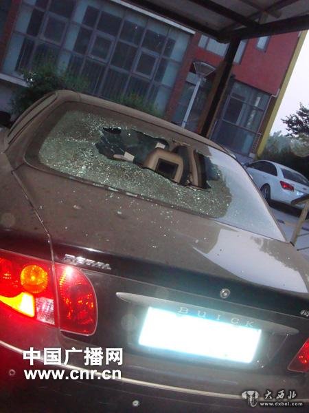 贡先生:他是下午三点多就停了我的水,然后,凌晨0:30分停了我的电,凌晨2:50分砸了我的车,砸了我的窗户。今天他又干了出格的事儿就是,把我的窗户又砸啦。砸完之后泼的油漆。然后又扔一只死猫,扔在我们家门前。这个,应该说行为是非常恶劣的。