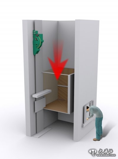 ① 服务员伸头探望时,升降梯突然坠下。 张叶制图