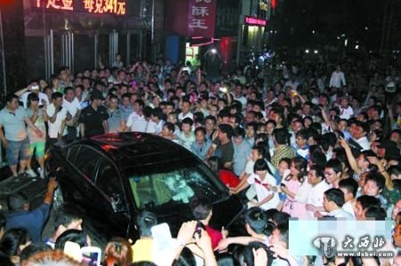 众人刚开始用脚踹车,之后有人则直接站在轿车之上。围观者掀翻了这辆黑色本田轿车。网友“孤影”称,当晚9时许,事发现场已聚有几千人。