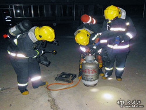 据了解,当晚22时07分,红古消防中队接到指挥中心出动命令:位于海石湾汽车站对面华东超市5楼发生液化气罐泄漏事件,要求消防官兵到场救援。接到命令后值班员立即带领10名官兵、一辆水罐消防车和一台抢险救援车急速赶赴现场。在赶赴现场的过程中,指挥员就现场情况对参战官兵进行了任务分工。