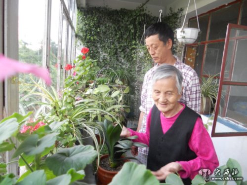 史爱辉挽着母亲胳膊走到凉台,10几平方米的凉台摆放着几十盆花卉。枝叶泛着翠绿颜色,10几朵粉红色花朵竞相开放,凉台上弥漫着芬香气味。“妈,你看这朵花好看不好看?” 史爱辉指着几朵花笑咪咪说道。老人看到鲜艳花朵脸上露出笑容。看完花卉“展览”史爱辉又把母亲领到凉台南侧,一个几乎和凉台一样高的铁丝网内,几只鹦鹉正在“树枝上”欢快的上下跳跃,不时发出迷人叫声。听到鸟儿叫声,看到它们调皮的身影,老人脸上又露出难得的笑容。