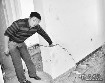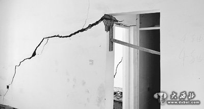 “2013年4月5日,天山区接到乌拉泊村村民反映搬迁安置点有个别空置安置房屋因地面下沉,导致墙体出现裂缝,存在安全隐患后,立即成立了以区长为组长的调查处理小组,安排专业人员对墙体裂缝安置房进行了勘察,发现有5栋空置安置房不同程度出现上述情况。其中以六标段13号安置房最为严重。”天山区建设局工作人员介绍。