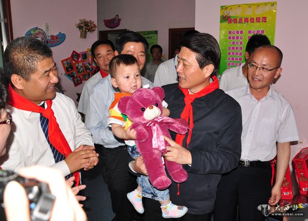 刘伟平省长等六一儿童节前夕看望兰州市儿童福利院孤残儿童。 贾笑云 摄