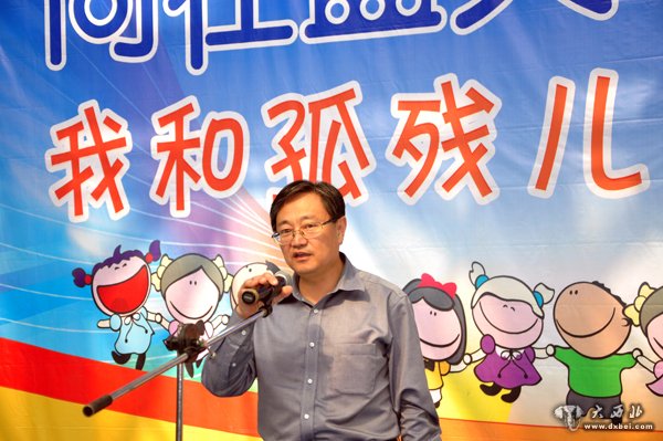 甘肃省委宣传部副部长范鹏在兰州儿童福利院致词 。 贾笑云 摄