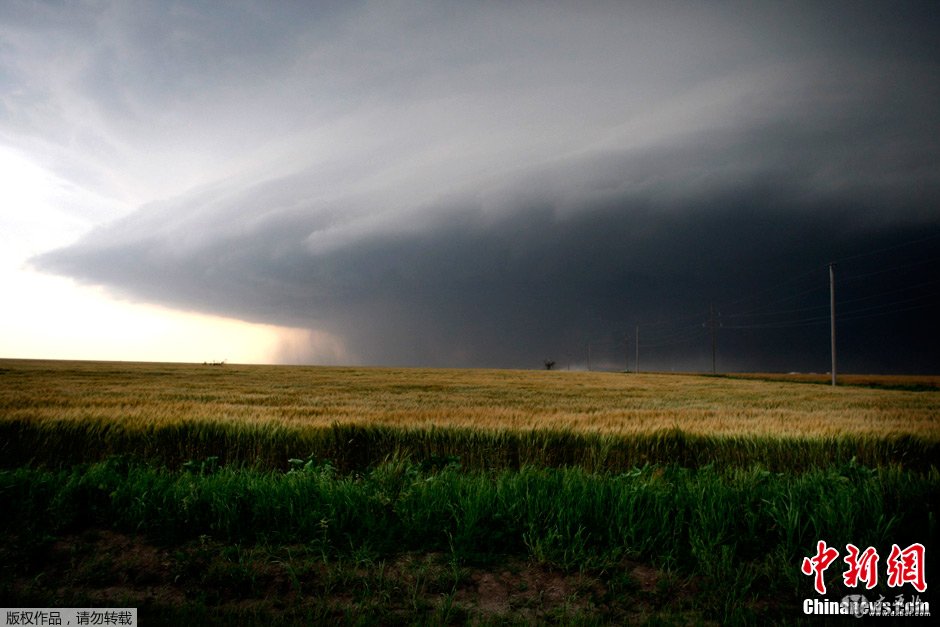 美国俄克拉荷马州刚刚经受超强龙卷风带来的灭顶之灾,位于“龙卷风走廊”的中部地区30至31日再次遭遇十几场夹杂强风暴和冰雹的龙卷风侵袭,已造成人员伤亡。图为当地时间5月31日,俄克拉何马州厄尔里诺,一股龙卷风来袭。