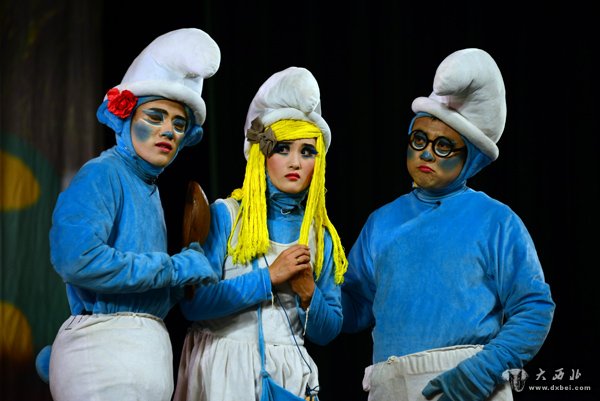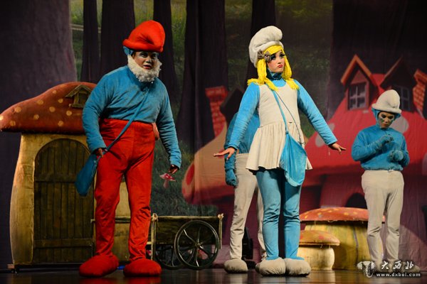 儿童歌舞剧《蓝精灵之蓝妹妹》兰州演出剧照。 贾笑云 摄