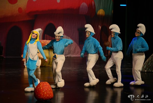 儿童歌舞剧《蓝精灵之蓝妹妹》兰州演出剧照。 贾笑云 摄