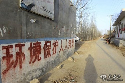 3月1日,河南浚县老观嘴村,环境保护标语到处都是,但是污染情况依然存在。