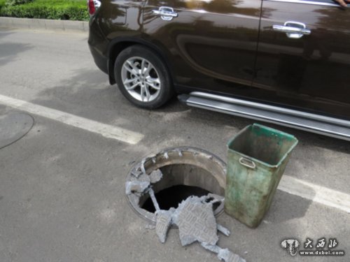 6月4日,有热心市民提供线索称滨河路窨井又张口。记者赶到小西湖公园北侧滨河路的机动车道看到:一窨井张着大口,旁边放着一个垃圾桶作提醒标记,车辆从旁边疾驰而过,窨井旁散落着一些井盖残片和一根类似拉线的支撑物,一位业内人士介绍:这种材料作的井盖,负荷有限,难以承载机动车的碾压。