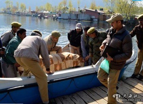 资料图:当地时间2013年4月6日,印度达尔湖,警察从船屋中抬出一具英国女游客的尸体。据当地媒体报道,这名女游客生前疑遭性侵,一名涉有重大作案嫌疑的荷兰籍游客已被逮捕。