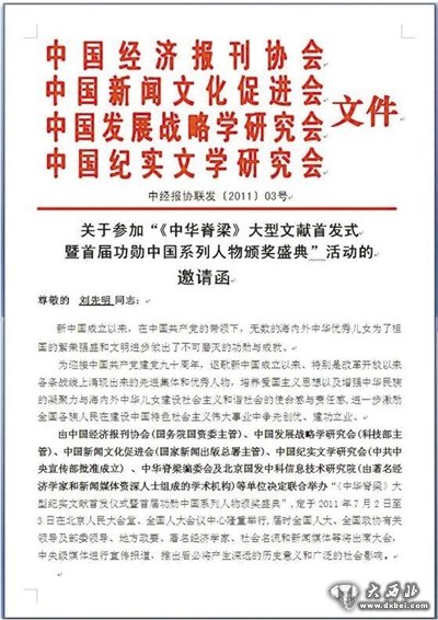 2011年7月,有网友曝光“中华脊梁”颁奖盛典活动主办方要求参会者交纳9800元,可申报“中华脊梁·十大杰出人物”等奖项。