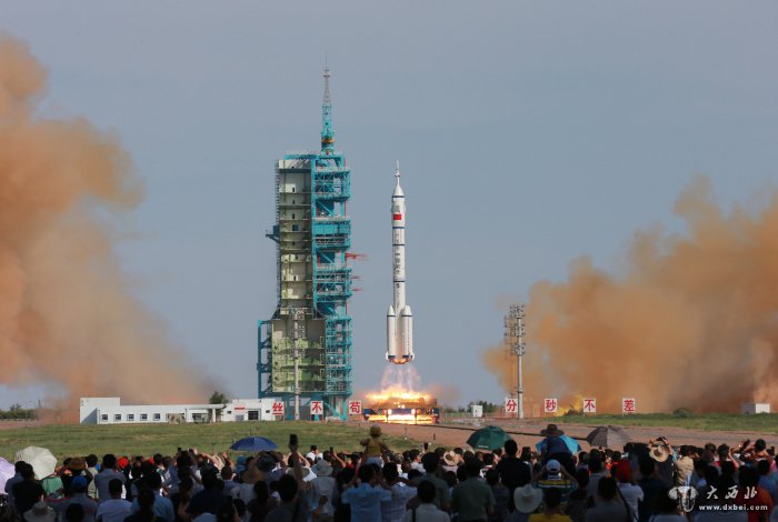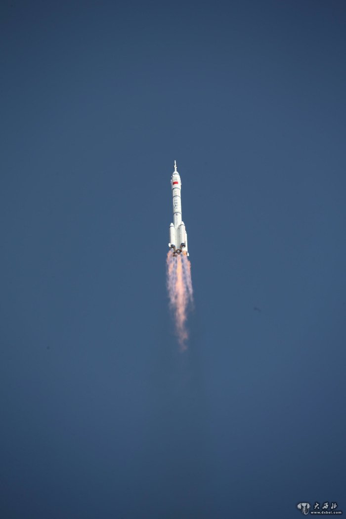 17时38分,地动山摇般的轰鸣声中,托举神十飞船的长征二号F火箭腾空而起,把一团橘红色的烈焰留在了湛蓝的大漠长空。