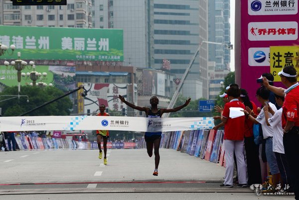 2013兰州国际马拉松全程赛男子组 由埃塞俄比亚选手所罗门·斯格·阿斯法获得第一名。 贾笑云 摄