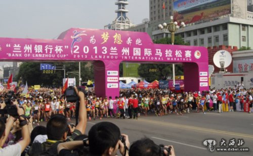 鑫报讯 6月15日,2013兰州国际马拉松赛在兰州东方红广场鸣枪开赛,来自国内及26个国家和地区的4.3万余名参赛选手及马拉松爱好者,在美丽的百里黄河风情线,进行了一场体力与意志的精彩较量,这也是兰州国际马拉松赛这一目前国内举办地海拔最高的马拉松国际赛事第三次在兰州市举行。省委常委、副省长咸辉,省委常委、兰州市委书记虞海燕等省市领导参加了起跑仪式。