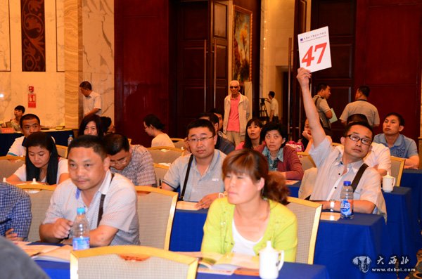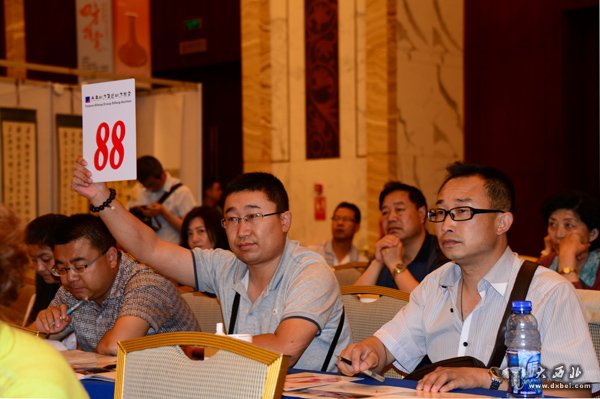 四方拍卖公司总经理、拍卖师瞿军业主拍武酒。 贾笑云 摄