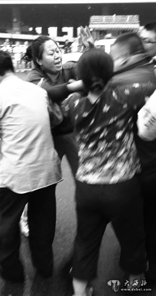 昨日,城管在动批一市场门口执法时,两女商贩对一协管保安进行殴打。