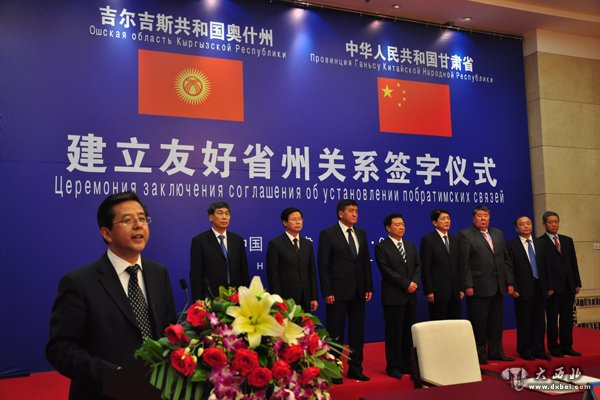 据悉,2012年7月5日,中华人民共和国甘肃省和吉尔吉斯共和国奥什州签署建立友好省州关系意向协议书。经过近一年的友好往来,两省州关系日益密切,双方了解不断加深。为了推进两省州务实合作,奥什州政府推出了52个合作项目参加兰洽会。两省州在教育、经贸、农业等领域互性强,合作潜力巨大。