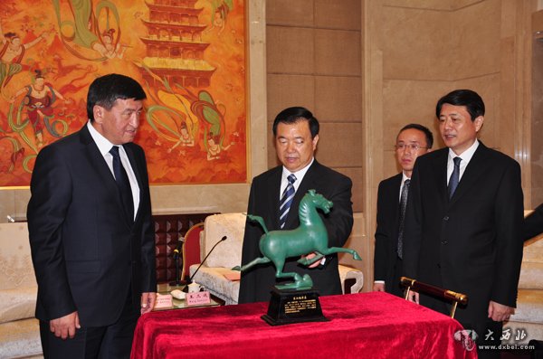 甘肃省委书记王三运代表甘肃省向奥什州赠送礼物铜奔马。 贾笑云 摄