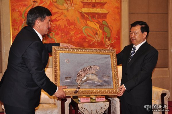 奥什州州长捷恩维科夫向 甘肃省赠送礼物。 贾笑云 摄