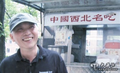 餐车老板叫谢云峰,河南洛阳人。来美国两年,老谢先后辗转几个州,跟着工程队做过装修,在中餐馆里学过厨,终于在47岁这年在纽约”自立门户“:在流动餐车上开起了专属于他的”中国西北名吃“。