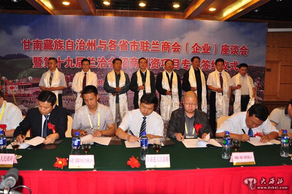 甘南州与驻兰商会(企业)座谈会暨第十九届兰洽会招商引资项目签约仪式。 贾笑云 摄