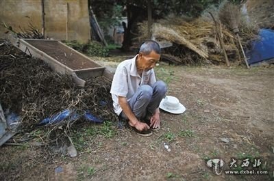 门外晒麦子的妻子马桂梅跑进来,把他扶起。