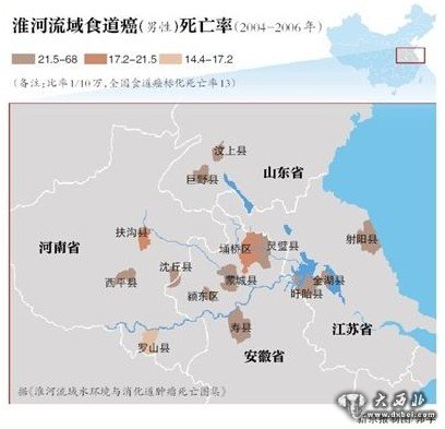 “癌症村”频现。2005年,中国疾控中心开始对淮河流域污染严重的县区进行研究
