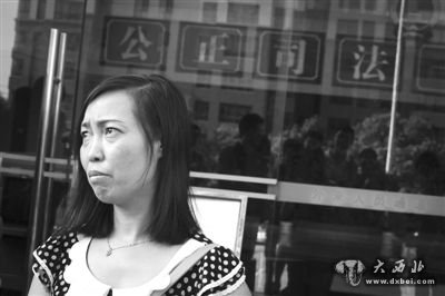 庭审结束后,唐慧走出法院。侯少卿 摄