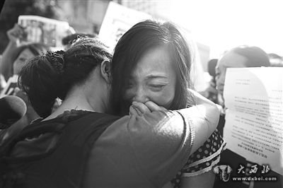 进入法庭前,唐慧抱着一个支持她的朋友,控制不住情绪哭了出来。侯少卿 摄