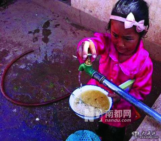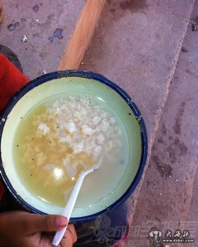 图片显示,学生们正排队打饭,一个小女孩端着一碗饭在水龙头前接水,碗里没有菜。图片配文称,“放学后排队打饭,今天吃的是米饭泡油茶。没有菜,有些孩子还往米饭里面加江水,你能吃下去么?该信息被众多媒体转发,网友”丽江阿英“质疑,”农村学校不是都有营养餐补助吗?不至于会天天这样吧?“