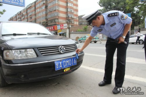 昨日下午15时15分,东岗交警大队二中队民警在天水中路开展涉牌统一检查行动。巡逻中民警发现,一辆由南往北行驶的悬挂甘ADM011号牌的黑色帕萨特轿车尾号数字的颜色格外深,民警随即打手势示意此车靠边接受检查。
