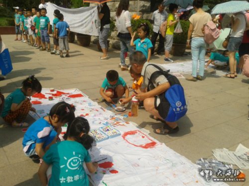 夏天的清晨,晨练的人很多。上午8时,一队队四五岁的孩子们沐浴着清新的空气,呼吸着花草树木的芳香,蹦跳着爬上兰山。而这支“大手拉小手”的特殊队伍中还有爸爸妈妈和爷爷奶奶们,真是一道靓丽的风景。两个多小时后,在五泉公园的一块块空旷地上,老师、小伙伴、爸爸妈妈围成大圆圈开始在白色的“长卷”上一起作画。爸爸妈妈们与孩子一起动手动脑发挥想象,用彩色的画笔描绘出各种各样的动物和美丽风景,共同画出约10米的缤纷长卷,整个活动场面非常的温馨。