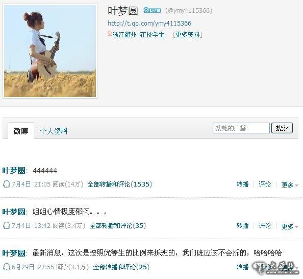 本报讯(记者余智骁) 浙江江山中学的女学生王琳佳在腾讯微博上最后的留言是7月5日下午3时31分的“Go”,而该校另一名女学生叶梦圆最后的留言是4日晚的“444444”。没想到,这成了她们生命中最后的留言。