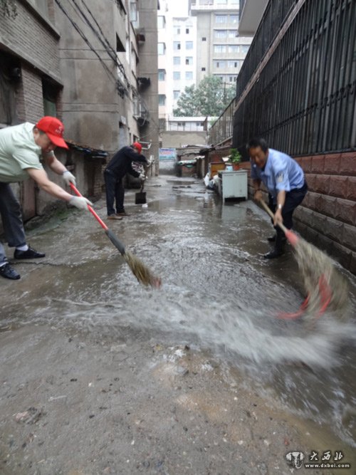 鑫报讯 近来,兰州连日雨水不断,给社区居民出行和生活带来一定困扰,尤其对老人和儿童来说,在积水的路面上行走随时可能有摔滑的危险。为居民出行提供便利,昨日一大清早,绣河沿社区组织全体干部前往辖区重点积水区域开展清除积水行动。在益通小区家属院院子里,积水已经淹过小腿,泥泞不堪。水坑多,排水难……社区工作人员顾不了那么多,纷纷挽起裤腿,拿上铁锨、扫把、水桶直接走向水坑最深处开始扫水,一些居民也加入进来。大家经过2个多小时的奋战,齐心协力将益通家属院与周边区域的积水清理干净。路面没有了积水,周边居民出行方便多了。