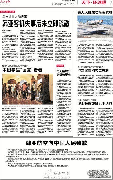 北京青年报:【韩亚航空今天在本报登广告致歉中国人民及政府】
