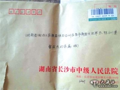 曾珊还说,信封上的地址是她、哥哥以及爸妈的住址。14日,哥哥接到快递电话,说有封挂号信,但是他和曾珊都在长沙,就请一个朋友帮取了,随后带给他们。