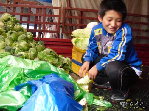 陈翌晨,来自陇南,现在是银滩小学五年级学生,一放暑假就开始帮爸妈干活,他忙碌的一天是从早上九点多开始的。当记者见到他时,他正拿着铁锹站在大卡车上铲菜叶的背影。10岁的他俨然成了一个能干的好帮手,等他铲完菜叶,气喘吁吁的蹲在了车厢边上。