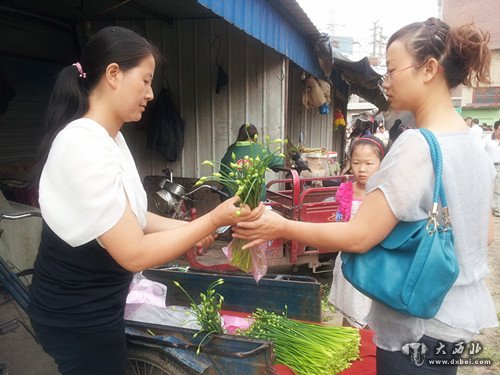 “刘老板,你怎么卖起韭苔了?”同为香蕉批发商的另一位朋友笑着与刘女士打招呼。已经“转行”的刘女士笑着说:“闲着也是闲着,赚个生活费罢。”在她身旁的三轮车上,整齐地摆放一些着绿油油的韭苔。“韭苔怎么卖?”“3块钱”“能便宜点吗?”“这韭苔早上刚打来,特别嫩,你看看。以前我们不了解,这些日子自己干了才知道,打韭苔真不是个容易活,一根韭苔一磕头啊!”刘女士没有很正面地回答顾客能否便宜,而是采用了说理的方式。“一根韭苔一磕头,什么意思?”欲买韭苔的顾客干脆与刘女士聊起了天。