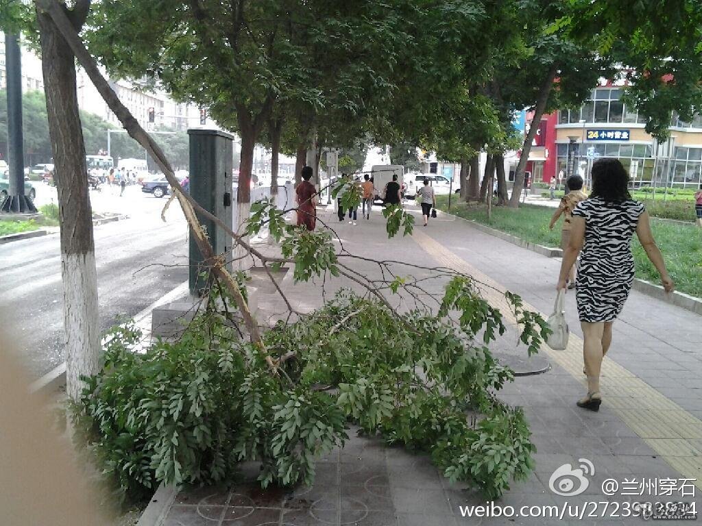 大西北网7月24日讯 24日8时许,兰州西津东路侧人行道上,一棵树的树枝断裂倒在人行道上。