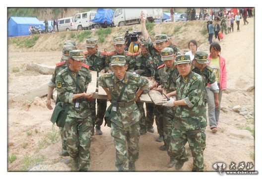大西北网7月24日讯 7月24日上午,震区上空阴云密布。担负岷县梅川镇马家沟一社搜救排查任务的武警8672部队官兵,在一处快要倒塌的危房中,找到颈肩部受重伤的36岁村民杨建科,为了在最短时间内,用最科学的方法,将他护送到山下,11名官兵在肩膀上展开了一场生死接力。