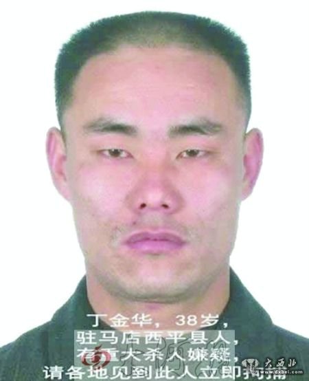 通报说:25日上午11时56分,驻马店市西平县发生一起恶性杀人案,犯罪嫌疑人丁金华(男,38岁,西平县人和乡大朱村人,身份证号:412824197502123938)在当地持刀杀死3人后,又窜至漯河市抢劫一辆出租车(豫LT0123,车体颜色上蓝下黄),杀死1人、杀伤1人,现在逃。