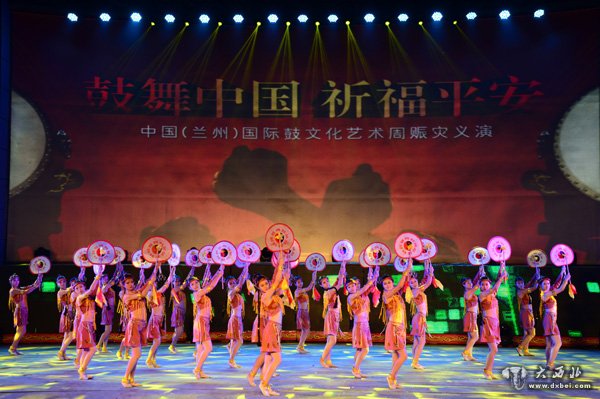 中国(兰州)国际鼓文化艺术周赈灾义演天水扇鼓舞。 贾笑云 摄