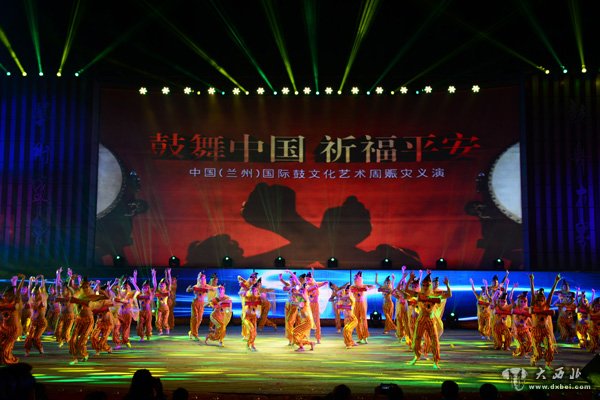 中国(兰州)国际鼓文化艺术周赈灾义演鼓舞。 贾笑云 摄