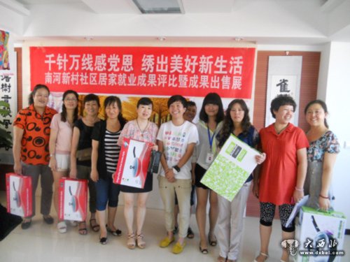 7月29日14时许,三三两两的人们走向通往南河新村社区的路上。哇塞,人来了这么多!一位居民感叹道。社区门口已经积聚不少居民,这使得本来狭窄的楼梯显得有些拥挤。“社区召开什么会,来了这么多人?”人行道上一位大妈纳闷问道。“李妈,今天社区举办十字绣居家就业成果展,同时现场还可以交易!”一位走进社区的人告诉这位大妈。“那我也进去凑个热闹。”说着大妈也跟着大伙迈上社区楼梯。